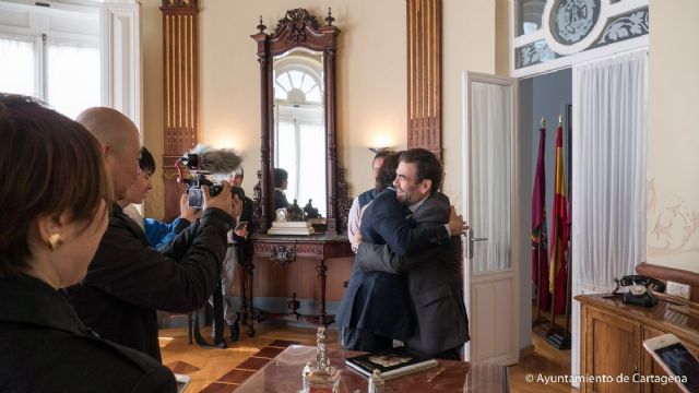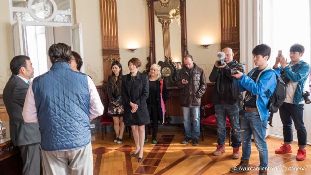 El alcalde de Cartagena, José López, hará llegar la riqueza patrimonial y potencial turístico de la ciudad a la audiencia de China del canal de televisión The Travel Channel, tras la entrevista que ha sido grabada al regidor en la sala Isaac Peral del Palacio Consistorial.