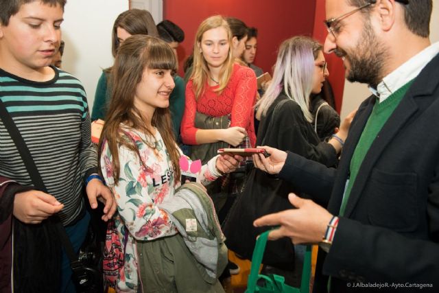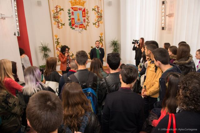 Durante esta mañana, cerca de 40 jóvenes estudiantes, 25 de ellos extranjeros, han realizado una visita al Palacio Consistorial donde han sido recibidos por el concejal de Educación e Igualdad del Ayuntamiento de Cartagena, David Martínez, que ha querido darles la bienvenida a nuestra ciudad y le has invitado a disfrutar de nuestra trimilenaria historia, nuestra gastronomía y nuestras playas. Además, ha aprovechado para obsequiarles con unos detalles como recordatorio de su visita.