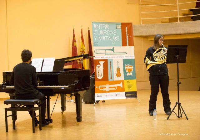 La modalidad de viento metal fue la protagonista de hacer disfrutar al público del Auditorio del Conservatorio de Música de Cartagena a través de los doce finalistas que interpretaron sus mejores actuaciones para tratar de colarse en la final del certamen Entre Cuerdas y Metales.