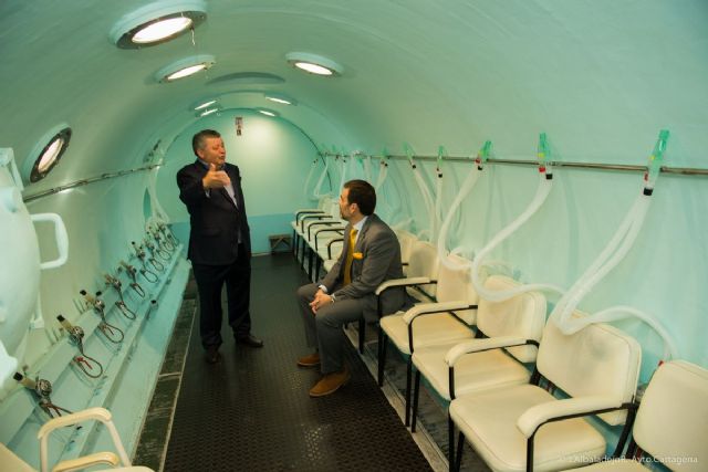 Uno de los elementos más llamativos de este hospital es la cámara hiperbárica, que cuenta con una amplitud y unas características que la hacen única en la Región y lo convierten en un centro de referencia de la zona.