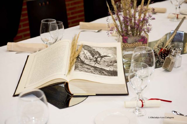 Además, la Escuela de Hostelería y Turismo de Cartagena quiso sumarse a este homenaje elaborando un cuidado menú que, bajo el nombre de comida cervantina, contaba con platos inspirados en el autor de El Quijote, así como varios alimentos que nombre el hidalgo manchego al inicio de este libro.