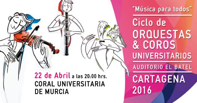 Como parte del ciclo de orquestas y coros universitarios Música para todos organizado por la Concejalía de Cultura, la Universidad Politécnica de Cartagena (UPCT) y el Instituto Superior de Enseñanza (ISEN), el viernes día 22 de abril a las20.00 horas se escenificará en el Auditorio y Palacio de Congresos El Batel una nueva actuación para todos los públicos y edades.