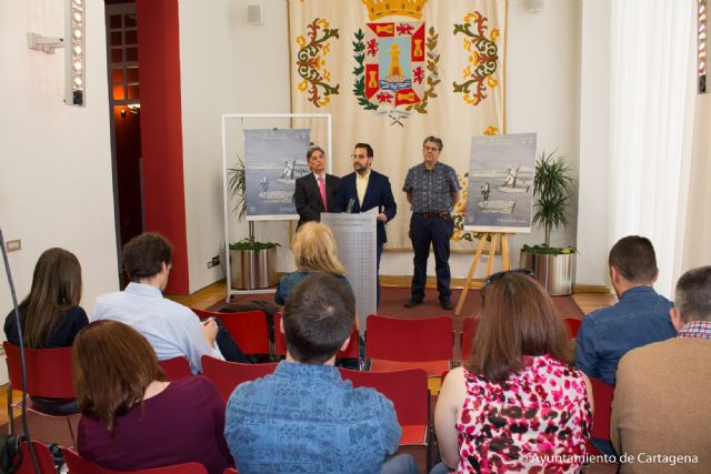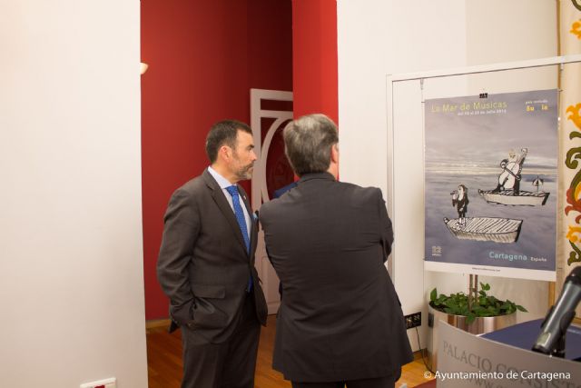 El bilbaíno Juan Ugalde es el autor del cartel de la vigésimo segunda edición de La Mar de Músicas, que se ha presentado esta mañana de la mano del concejal de Cultura, David Martínez y del secretario general de la Consejería de Cultura y Portavocía, José Vicente Albaladejo. Al final de acto, también el alcalde de Cartagena, José López, ha querido acercarse para contemplar el cartel y saludar al artista.