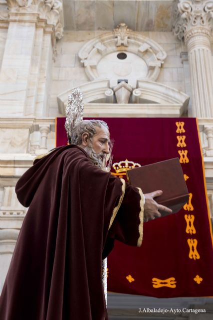 Una vez que la imagen llegó a la plaza de San Ginés, fue testigo junto al resto asistentes, de la escenificación del momento histórico de la elección del santo como Patrón de Cartagena, ocurrido el 27 de abril de 1677, donde ante una epidemia la gente de la ciudad invocó al patrón a paliar sus efectos.