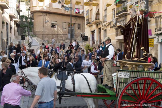 El ambiente festivo y romero se apoderó el sábado del Puerto, donde se celebraron los actos conmemorativos de la elección de San Ginés como Patrón de Cartagena, con travesía del Santo por mar y desembarco de la imagen en la Escala Real, para llegar, acompañado por unos doscientos romeros, hasta las puertas del Palacio Consistorial.