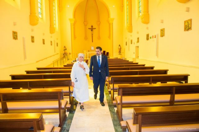 Día tras día se hacen compañía mutuamente junto con las monjas, los asistentes sociales, médicos, fisioterapeutas, cocineros o jardineros que también sienten el centro como su hogar. Esta mañana, el alcalde de Cartagena, José López, ha querido formar parte de este agradable ambiente y ha hecho un recorrido por todas las instalaciones del asilo deteniéndose en cada una de las dependencias con la guía de las propias Hermanitas.