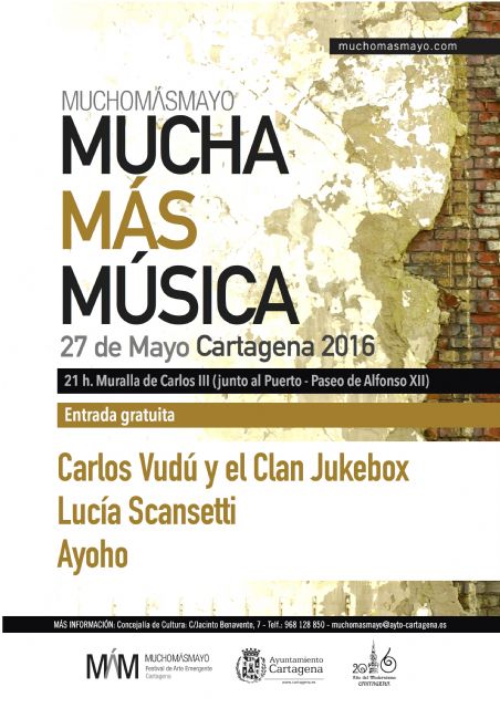 Sigue avanzando el programa de M+M con nuevas y originales propuestas para este viernes, en el que el plato fuerte será el concierto de Mucha Más Música, gratuito y de gran formato, un escaparate en el que mostrar algunas de las propuestas locales y nacionales emergentes del panorama musical, que comenzará a partir de las 21h., estrenado lugar ya que se hará junto a la Muralla de Carlos III en el Paseo Alfonso XII (cerca de Héroes de Cavite).