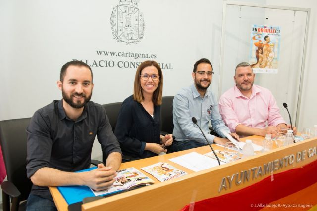 Teatro, conciertos, jornadas de convivencia o actos reivindicativos de Igualdad protagonizan la programación del EnOrgulleCT 2016, que cuenta con la colaboración del Ayuntamiento de Cartagena. Los actos se iniciarán vistiendo de los colores del Arco Iris el Palacio Consistorial el viernes 17 de junio con un izado de banderas, amenizado por la Agrupación musical Sauces que ofrecerá un concierto a las 19:00 horas en la Plaza del Ayuntamiento.