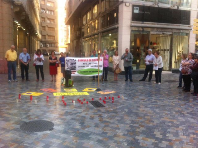 El Círculo de Silencio, acción de solidaridad con los inmigrantes, que se celebra el primer viernes de cada mes en la plaza del Icue, contó la pasada semana con la presencia de la concejala de Servicios Sociales, Carmen Martín, y el coordinador de la Concejalía, Damián Pérez, que se unieron a otros muchos asistentes.