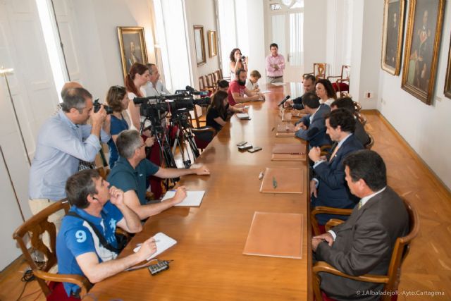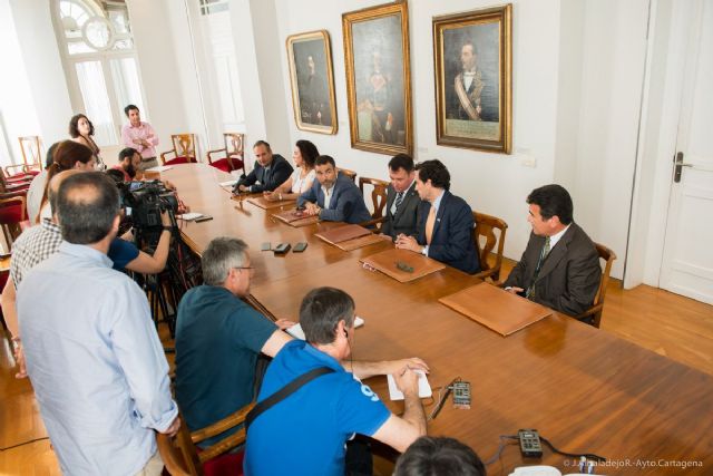 El alcalde de Cartagena, José López, y el vicepresidente europeo de Sabic, Mark Williams, han firmado en la mañana de hoy miércoles un convenio de colaboración que permitirá la continuidad de la Vía Verde del Campo de Cartagena a su paso por las inmediaciones de la factoría en La Aljorra. En el acto también se encontraba la concejala de Turismo e Industria, Obdulia Gomez, y directivos locales de la multinacional.