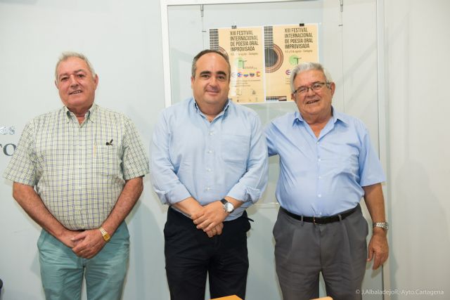 Una nueva edición, la XIII, del Festival Internacional de poesía oral improvisada, más conocida como Trovalia, vuelve este mes de agosto, del 4 al 6, a Cartagena y, como ya es habitual, utilizando varios escenarios, uno diferente cada día, tal y como han dado a conocer hoy miércoles en rueda de prensa el concejal de Festejos, Juan Pedro Torralba, y el presidente de la Asociación Trovera José María Marín, José Martínez El Taxista, organizadora del evento. Les acompañaba el vicepresidente de la asociación, Andrés Marchán.