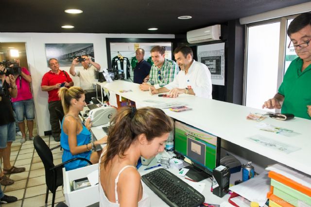 Aprovechando que continúa la campaña de abonados para el F.C. Cartagena, Efesé, y para el F.S. Cartagena Plásticos Romero, el alcalde de Cartagena, José López, se ha acercado esta mañana, día 3 de agosto, a las dependencias del Estadio Cartagonova y del Pabellón Municipal Wssell de Guimbarda acompañado del concejal de Deportes, Ricardo Segado, para sacar sus abonos de cara a la temporada 2016/2017.