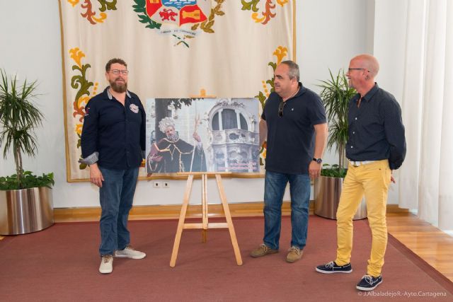 José María Alcalde ha mostrado la fotografía elegida por la directiva para el evento, que corresponde a una imagen realizada por M.ª Dolores Ruiz, componente de la Hermandad, y que hace un guiño al Año del Modernismo en Cartagena, ya que cuenta con la Casa Maestre como telón de fondo.