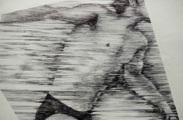 Inspirado por los dibujos de Giacometti y Marcel Duchamp y la representación corporal renacentista y oriental, el artista muestra a través de acuarelas, acrílicos o técnica mixta los umbrales que conlleva nuestra experiencia como seres corpóreos, trabajando sobre el cuerpo, el espacio y el movimiento, con el dibujo como medio de expresión pararepresentar con líneas horizontales el movimiento y la vibración.
