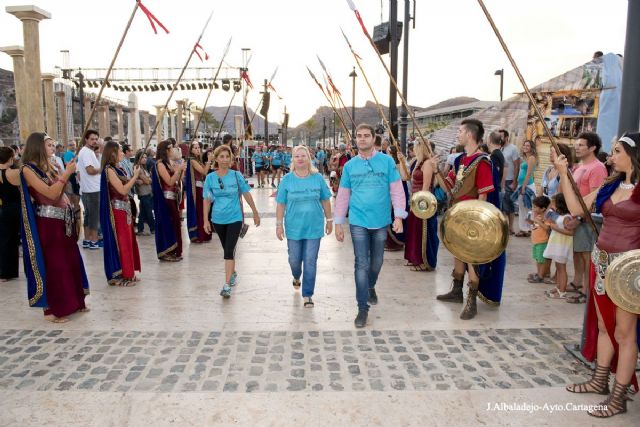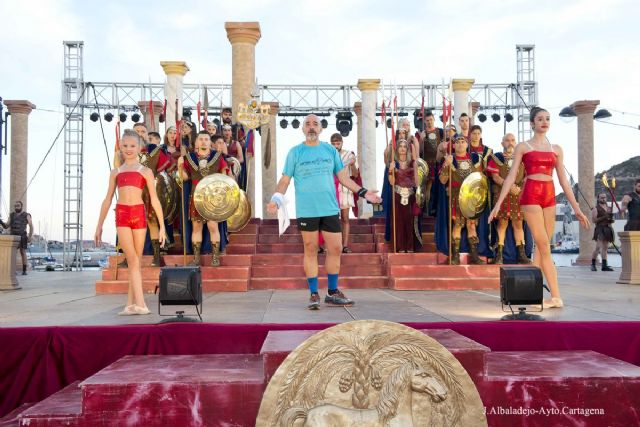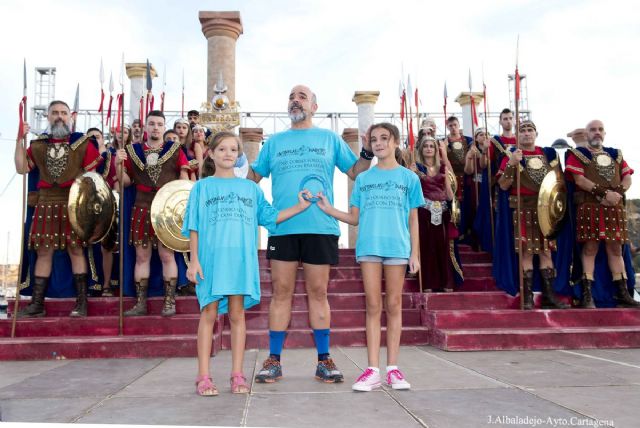 Momentos previos al inicio de la ruta tuvo lugar una escenificación en el recinto de Carthagineses y Romanos del puerto, ambientando el evento solidario en la historia de Cartagena, que durante estos días celebra sus fiestas.