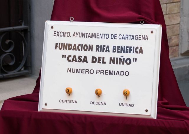 El cupón premiado del sorteo extraordinario de la Casa del Niño con motivo de las fiestas ha sido el 018. Este sorteo se ha realizado a las 13,45  horas en la sede de la Federación de Tropas y Legiones situada en la calle de la Caridad, y a él ha asistido la concejala de Servicios Sociales, Carmen Martín del Amor, y el concejal de Festejos, Juan Pedro Torralba.
