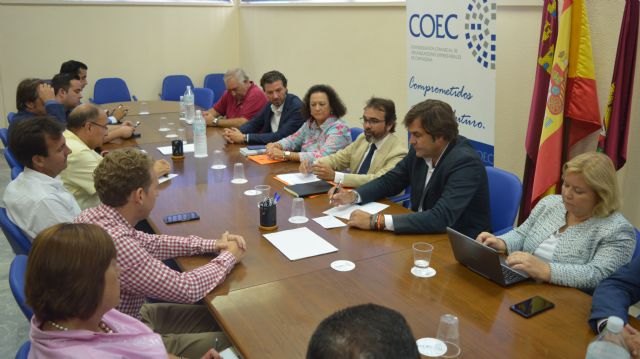 Pedro Rivera informó hoy al presidente de la Confederación de Organizaciones Empresariales de Cartagena (COEC), Pedro Pablo Hernández, y miembros de su Comisión Ejecutiva de los compromisos adquiridos por el presidente del Gobierno regional, Pedro Antonio Sánchez, y el ministro de Fomento en funciones, Rafael Catalá.