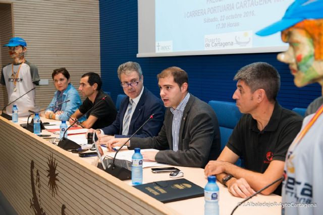 Las instalaciones de la Autoridad Portuaria han albergado hoy, 19 de octubre, la presentación de esta prueba deportiva que ha contado con la presencia del concejal de Deportes del Ayuntamiento de Cartagena, Ricardo Segado. El edil ha estado acompañado por Alfredo Fresneda, responsable de Recursos Humanos de la Autoridad Portuaria; Elena García, en representación de la Asociación Española contra el Cáncer; el presidente del club Runtritón, José Luis Conesa y el director técnico de la prueba, Jorge Baena.