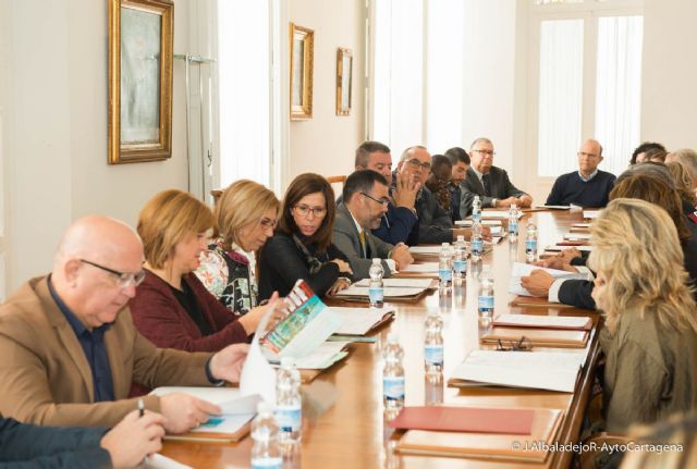 El alcalde de Cartagena, José López; la vicealcaldesa, Ana Belén Castejón; el concejal del Área de Calidad de Vida, Francisco Calderón; y la concejala de Servicios Sociales, Carmen Martín del Amor, se han reunido hoymartes, 15 de noviembre, con diversos agentes implicados en la protección de las personas sin hogar que pernoctan en la calle. La Sala de Concejales del Palacio Consistorial ha recibido a Policía Local, técnicos de la Concejalía de Servicios Sociales, albergues y ONG's como Cáritas o La Huertecica, entre otras, que han participado en una mesa para desarrollar esta campaña integral y colectiva de toda la ciudadanía, ideada para ayudar a personas sin techo ante la bajada de las temperaturas.