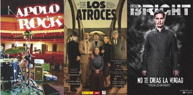 El fin de semana del 2 al 4 de diciembre se presenta con una programación completa en el Teatro Circo Apolo de El Algar. Teatro, rock y magia son las propuestas que durante estos tres días se adaptan a los gustos de un público muy diverso.