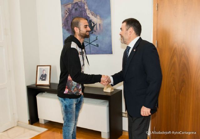 El deportista cartagenero ha sido recibido en el Palacio Consistorial por el alcalde, José López, y por el concejal de deportes, Ricardo Segado