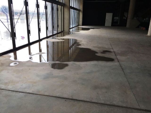 La Concepción. Múltiples filtraciones de agua por ventanales, el techo, por pantallas estancas de luz y pasillos. Debido a las filtraciones se produjo fallo en el sistema eléctrico de todo el Centro. En la salida al patio se observa un hundimiento del piso a causa del lavado de los materiales por el agua (se han realizado las reparaciones oportunas, facilitando informe a la CARM para que acometa una actuación integral).