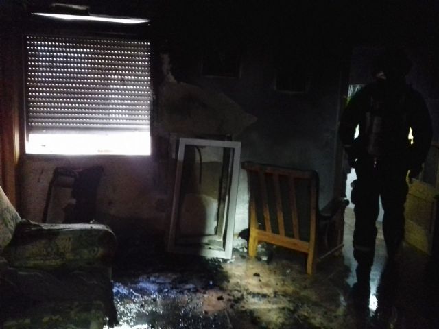 Bomberos del Servicio de Extinción de Incendios y Salvamento (SEIS) del Ayuntamiento de Cartagena extinguieron ayer martes un incendio en una vivienda en la calle de Guimbarda, del Barrio Peral.