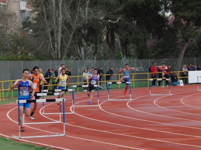 Manel Mas y Antonio Peñalver en martillo con 44.02 y 37,42 en 5ª y 7ª posición, Jose Antonio Maldonado y Pablo Díaz en pértiga con 4.40 y 4.20 m y 1ª y 3ª posición, Joseda Martinez y Angel Ortiz en salto de altura con 1,85 y 1,75 y 5ª y 7ª posición, Pablo Díaz y Andrés Torres en 400 metros vallas con 53.90 y 55,41 y 3ª y 4ª posición, Andrés Romero y Alejandro Martinez en disco con 41.59 y 37.40 metros y 1ª y 6ª posición, Ismael Belhaki y Jorge lópez en 400 m con 49.48 y 52.93 y 1° y 8° puesto, Jose ALberto Esteso y Jacob Manuel Rodriguez en 800 m con 1.59 y 2.00 con un 6° y 7° puesto, Sergio López Barranco y Rubén Salinas en 200 con 22.03 y 22.73 y 2ª y 5ª posición, Vicente Guardiola y Carlos Carrión en longitud con 6,96 y 6.06 y 1ª y 8ª posición, Alex González y Roberto Sánchez en 1500 con 4.07 y 4.14 y 5ª y 6ª posición, Vicente Guardiola y Sergio Jornet en 110 metros vallas con 14.91 y 15.50 y 2ª y 4ª posición, Jose Antonio Maldonado y Ruben Salinas en 100 metros con 11.09 y 11.44 y 2ª y 6ª posición, Pedro Conesa y Joseca Galvez en 5 km marcha con 23.03 y 24.29 y 2° y 5° puesto, Juanjo Martínez y Joseda Martinez en jabalina con 48,85 y 45.32 metros en 4° y 5ª posición, Antonio Peñalver y Sergio Jornet en Peso con 13.20 y 11.98 y 3ª y 6ª posición, Mariano García y Mohammed Zouini en 3000 m obstáculos con 9.10.18 y 10.20.63 y 1ª y 5° posición, Alejandro Garcia y Lucas Postigo en los 3000 m lisos con 8.46 y 8.48 en 3ª y 4ª posición, Salvador Rubio y Contantino Andrés en el triple salto con 13.46 y 13.01 metros y 5° y 7° puesto, los relevos de 4x100 formados por Torres, Peleato, Meza y Alcaraz hicieron 4ª posición con marca de 44.60 y el relevo de 4x400 metros formado por Ortiz, Rodríguez, Martinez y Alcaraz, hicieron un 4° puesto con 4.49.95