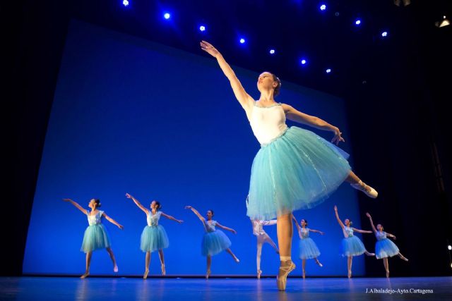 Más de 300 estudiantes de la Escuela Municipal de Danza de Cartagena, entre jóvenes y adultos, subieron al escenario este martes, 20 de junio, para participar en la XXIV Muestra de Danza con la que despidieron el curso 2016-2017 en la Sala A del Auditorio y Centro de Congresos El Batel.