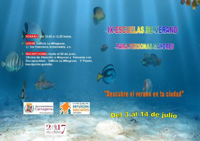 El plazo de inscripción para participar se encuentra abierto hasta el próximo viernes 30 de junio y la matrícula es gratuita. Las inscripciones pueden realizarse por vía telefónica, llamando al número 968 12 88 51, por correo electrónico a informayor@ayto-cartagena.es o bien de manera presencial en la Oficina de Atención a Personas Mayores y Discapacitados sita en la primera planta del Edificio La Milagrosa, en la calle Sor Francisca Armendáriz.