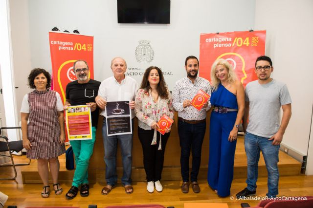 Cartagena Piensa, uno de los programas más innovadores de la Concejalía de Cultura, en el que colaboran la UPCT y otras asociaciones y colectivos, ha puesto en marcha su cuarta programación trimestral, que incluye talleres y actividades que van a celebrar entre octubre y diembre, con una serie de novedades, de las que ha dado cuenta hoy miércoles el edil David Martínez, quién ha estado acompañado en la presentación por Cayetano Gutiérrez, catedrático de Física y Química y divulgador científico, así como miembro del grupo promotor Cartagena Piensa, y por la profesora de la UPCT Eva Tomaseti.