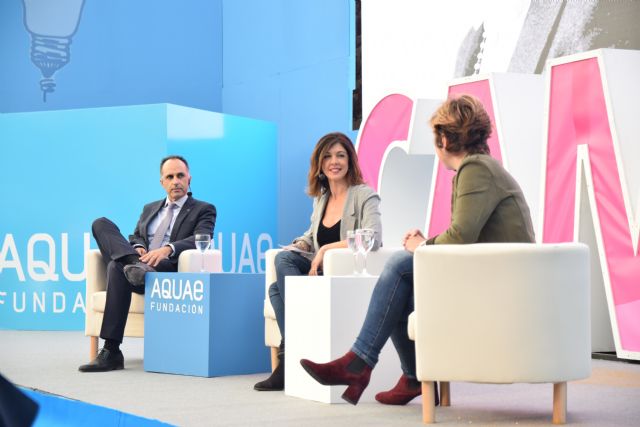 Adjuntamos una foto general y otra en la que aparece el rector de la UPCT, junto a la periodista Encarna Talavera y la presidenta del Consejo de Estrategia y Supervisión de Fundación Aquae, Mariola Urrea