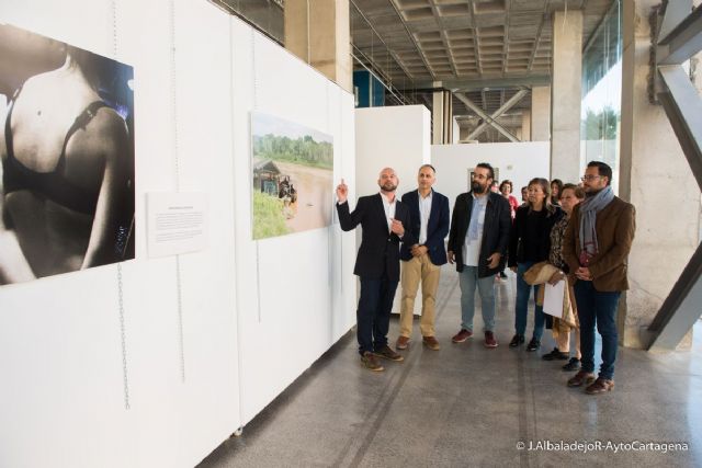 El acto inaugural se ha celebrado esta mañana, con la asistencia del Rector de la UPCT, Alejandro Díaz Morcillo, el concejal de Igualdad del Ayuntamiento de Cartagena, David Martínez, y el coordinador de CEPAIM en Cartagena, Pedro López, que junto a miembros de la universidad, el ayuntamiento y colectivos han visitado la exposición de la mano de su comisario.