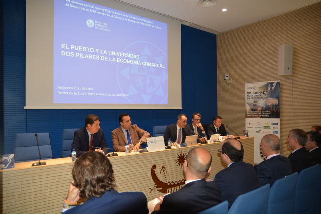 El Rector de la UPCT ha ofrecido durante una ponencia que ha compartido con el presidente de la Autoridad Portuaria, Antonio Sevilla, sobre el Puerto y la Universidad: dos pilares de la economía comarcal, datos sobre la situación de la Politécnica de Cartagena. En este sentido, ha destacado que hay 444 líneas de investigación y que la institución aglutina a más de 600 investigadores y tecnólogos y 6.000 estudiantes oficiales.