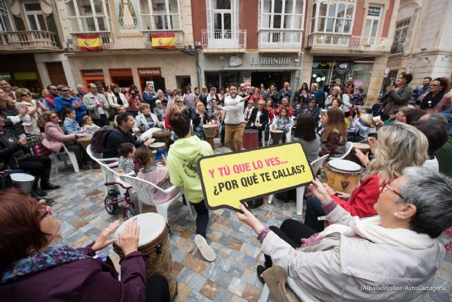 La Plaza de San Sebastián acogió uno de los primeros actos de la jornada, con la celebración de un círculo comunitario, en el que a través del ritmo de tambores, se trabajó con la música el poder del grupo. Esta actividad, dirigida a todos los públicos, titulada 'Que el poder de los tambores ponga la chispa de nuevo en tu vida' contó con la participación de la alcaldesa de Cartagena, Ana Belén Castejón, el concejal delegado de Igualdad, David Martínez, la concejala de Desarrollo Sostenible y Transparencia, María José Soler, la concejala delegada de Hacienda, Isabel García, y los ediles de los grupos de la oposición Manuel Padín, Ana Rama, Pilar Marcos o Teresa Rodríguez, entre otros.