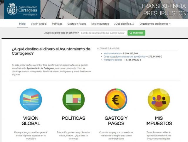 La nueva iniciativa consiste en la implantación de un nuevo enlace alojado en su Portal de transparencia, denominado, ¿A qué destina el dinero el Ayuntamiento de Cartagena?, que se encuentra a su vez, alojado dentro de la web institucional del Ayuntamiento de Cartagena. En esté nuevo portal se acerca al ciudadano, la información económica, presupuestaria y estadística de índole municipal, de forma sencilla y directa, para allanar su comprensión.