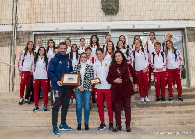 Las 21 jugadoras, a cuya cabeza está el entrenador Jorge Vidal, fueron recibidas en la tarde de ayer por la alcaldesa de Cartagena, Ana Belén Castejón y la concejala del Área de Calidad de Vida y Bienestar, Consumo, Sanidad, Medio Ambiente, Agricultura, Desarrollo Rural, Pesca y Deportes, Obdulia Gómez. La comitiva municipal se acercó al Estadio Municipal Cartagonova para agradecer la visita y apoyar a la selección, que lucha por clasificarse para el próximo mundial de Francia.