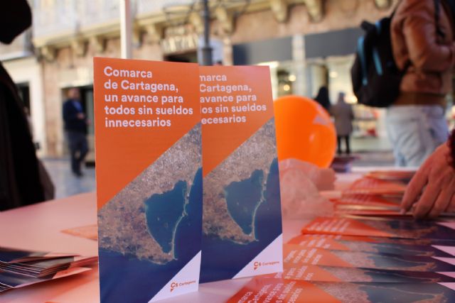 El Grupo Municipal de Ciudadanos en Cartagena ha instalado hoy una carpa informativa en el Plaza del Icue para explicar a los cartageneros, a través de trípticos, la propuesta de la formación naranja para comarcalización administrativa de la Región de Murcia. 'Comarca de Cartagena, un avance para todos sin sueldos innecesarios", es el lema que aparece en la portada de los folletos que los tres concejales de Cs Cartagena, Manuel Padín, Ana Rama y Alfredo Nieto, han estado repartiendo en las calles de la ciudad.