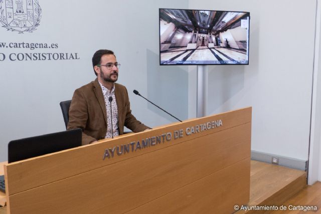 El concejal de Cultura, David Martínez, ha presentado hoy miércoles una iniciativa municipal dirigida a reforzar la promoción turística de la ciudad, la visita virtual al Palacio Consistorial que va a permitir recorrer cada una de las estancias de este edificio, símbolo del Modernismo en Cartagena, y, además, poder hacerlo cómodamente desde casa a través de un enlace en la web del Ayuntamiento.