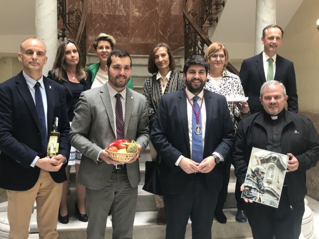 El presidente Fernando López Miras fue nombrado Hermano de Honor de la Cofradía de San Ginés de la Jara de Cartagena, con cuyo hermano mayor, Víctor Javier Navarro, se reunió hoy en el Palacio de Aguirre para conocer de primera mano el conjunto de actividades previstas por esta agrupación para celebrar, a partir de mañana y hasta el próximo 28 de abril, su Semana Cultural conmemorando el341 aniversario del Patronazgo de Cartagena y el XI aniversario de la Refundación de la Cofradía.