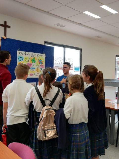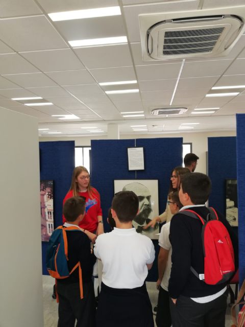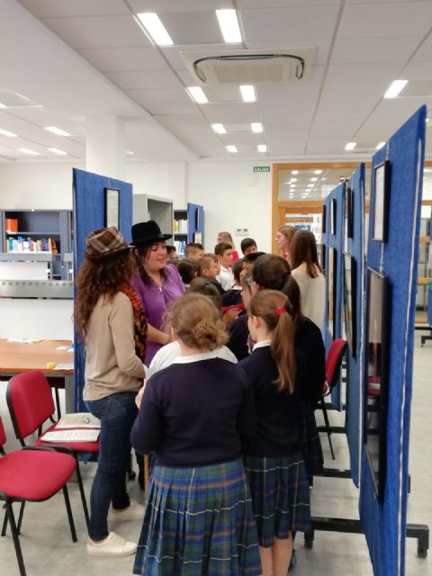 Estudiantes del colegio Sagrado Corazón de Jesús del barrio cartagenero de Los Dolores han conocido esta mañana la vida y obra de escritores de la Región de la mano de los universitarios que estudian los Grados en Educación Infantil y Primaria en el Campus de la UCAM en Cartagena. Para ello, los escolares han participado primero en unos talleres de literatura infantil, acertijos, trabalenguas, dados con historia, pintura y cuentacuentos para visitar a continuación la exposición 'Tierra de Escritores' que se muestra hasta finales de mes en la biblioteca de las instalaciones de la Universidad Católica en la ciudad portuaria.
