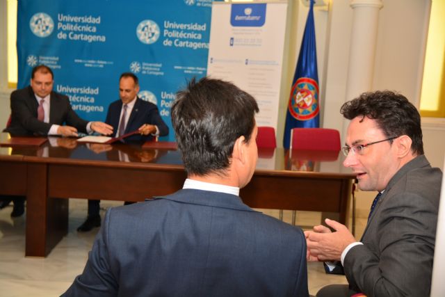 El rector de la Universidad Politécnica de Cartagena, Alejandro Díaz, y el director territorial de Ibermutuamur en Murcia, Eduardo Ruiz, han firmado un convenio de cooperación educativa para que los estudiantes de la UPCT realicen prácticas académicas en la mutua.