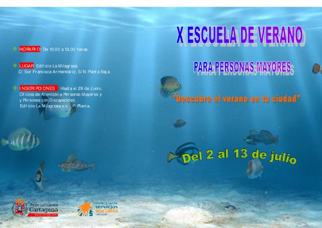 La Concejalía de Servicios Sociales, a través de la Unidad de Personas Mayores y Personas con Discapacidad, ha puesto en marcha de nuevo la Escuela de Verano, dirigida a personas mayores, que se desarrollará desde el 2 al 13 de julio, de lunes a viernes en horario de 10 a 12:30 horas, en el edificio de La Milagrosa.