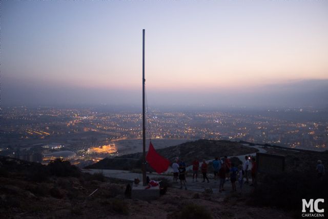 Esta mañana, a partir de las 6:00 horas, ha dado comienzo el primero de los actos que ha consistido en la subida al monte de la Atalaya y el izado de la bandera cantonal ante el Castillo. Asimismo, se ha realizado un cañonazo como escenificación y recuerdo del inicio de una Revolución que daría lugar a la constitución del Cantón de Cartagena.