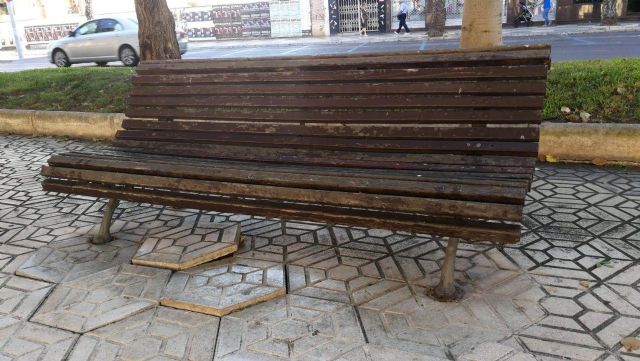 El deterioro de los bancos va en aumento, ya son casi 40 según se ha denunciado esta semana en las redes, y por lo tanto se hace urgente su sustitución, ya que apenas hay donde sentarse sin caerse.
