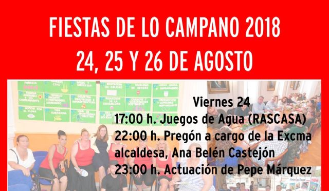 Las Fiestas de Lo Campano vuelven a la barriada Cartagenera por segundo año consecutivo después de se recuperarán tras doce años inactivas. Las actividades arrancan este viernes 24 de agosto con el pregón a cargo de la Alcaldesa de Cartagena, Ana Belén Castejón.