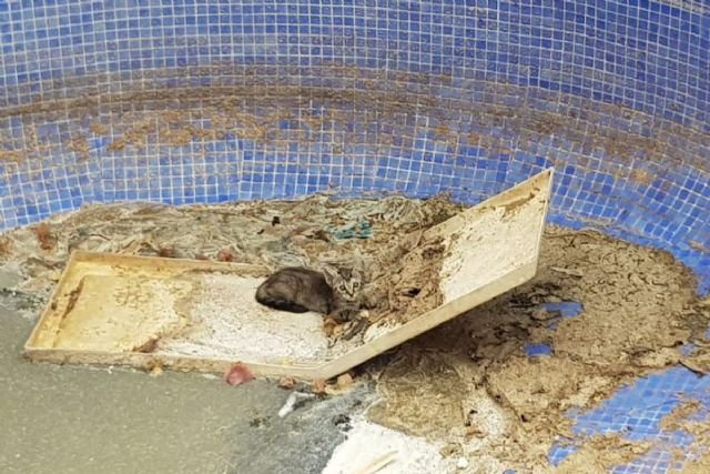 La Policía Local de Cartagena rescata un gato de una piscina vacía en Playa Honda