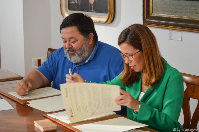 La alcaldesa de Cartagena, Ana Belén Castejón, y el presidente del Club Carthago Sala 2013, Miguel Ángel Jiménez, han firmado este jueves, 20 de septiembre, este convenio de colaboración entre ambas entidades.
