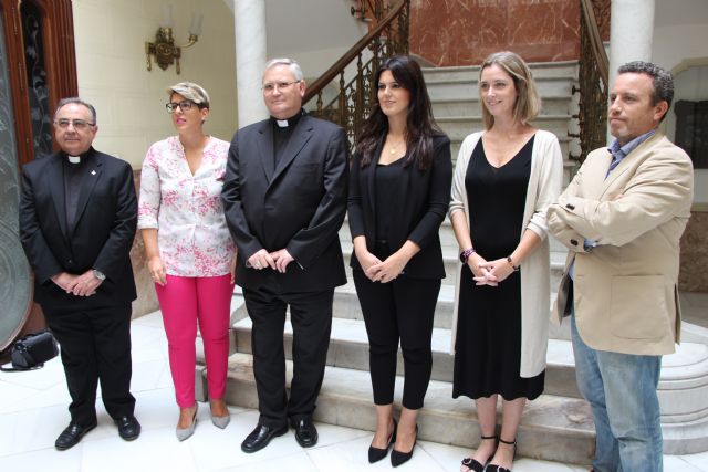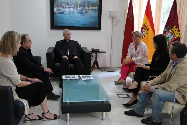 Mons. Lorca Planes se ha reunido esta mañana, en el Palacio Aguirre de Cartagena, con la consejera de Transparencia, Participación y Portavoz, Noelia Arroyo, para conocer los detalles de las próximas obras de restauración de la fachada de la iglesia parroquial de Santa María de Gracia. A dicha reunión también han acudido la consejera de Turismo y Cultura, Miriam Guardiola; la secretaria general de la consejería de Turismo y Cultura, María Casajús; y el vicario episcopal de Cartagena, José Abellán.