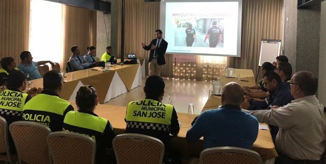 Diversos policías municipales del país se han dado cita esta mañana en Santa Ana (Costa Rica) para asistir a una conferencia sobre nuevos modelos policiales, impartida por Navarro.